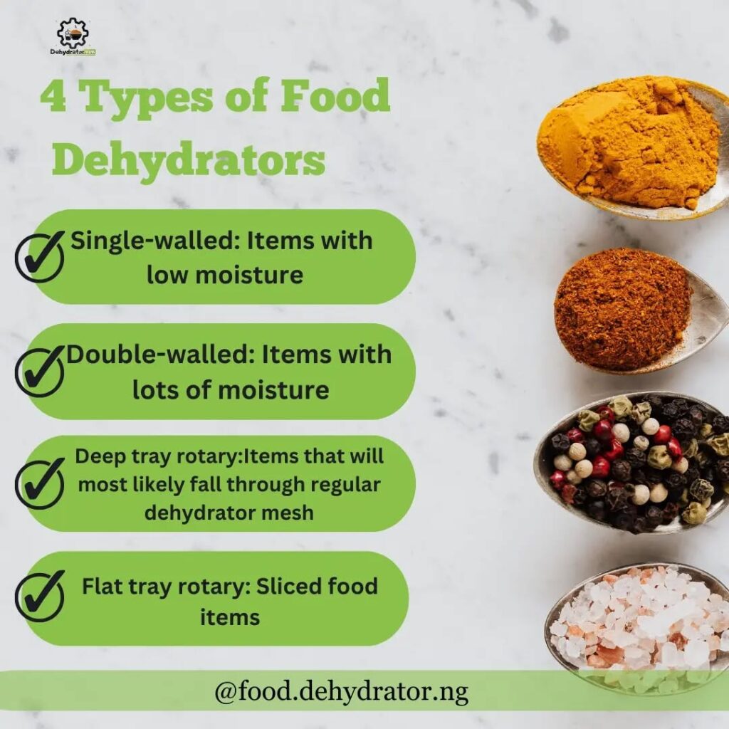 The type of food dehydrator you choose depends on your preferences, needs, and budget. Here are four common types;